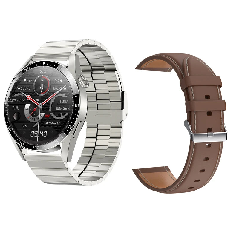 The GT3 Smartwatch with Bluetooth Call functionality offers comprehensive fitness and communication features compatible with all phones. Its 1.3-inch color LCD round screen delivers clear visuals, while the stainless steel detachable band ensures durability and comfort. Powered by a MediaTek HS6621 CPU and dual Bluetooth 3.0 and 5.1 BLE modes, it enables seamless call answering, dialing, and message reminders directly from your wrist. Health tracking includes heart rate, blood oxygen, step count, sleep monitoring, and calorie tracking, supported by the WearFit Pro app. Additional features such as multiple dials, alarm clock, interactive music control, and life waterproof design make it an ideal companion for an active lifestyle. Certified by CE, FCC, and RoHS, this smartwatch integrates effortlessly with various languages and Android devices, delivering expert-level performance in a sporty, user-friendly package.